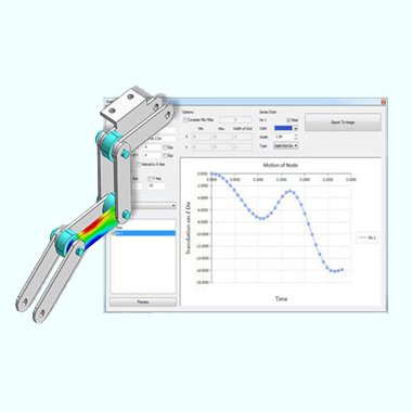 This type of analysis enables you to simulate systems that consists of flexible and rigid bodies. Parts are connected to each other by joints that restrict their relative motion. The study of Multi Body Systems allows you to perform both forward and inverse dynamic problems.